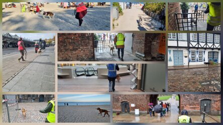 Los ging es am Freitag bei strahlendem Sonnenschein in Timmendorfer Strand. Die meisten Hunde haben am sehr gut besuchten Strand gefunden - eine völlig neue Erfahrung für die Teams. Abends haben wir gemeinsam im Restaurant Blüchereiche zusammengesessen, den Tag Revue passieren lassen und gegessen. Das Restaurant liegt direkt am Wald neben einem eingezäunten Hundeauslauf, so dass sich die Vierbeiner zuvor nochmal die Beine vertreten konnten.