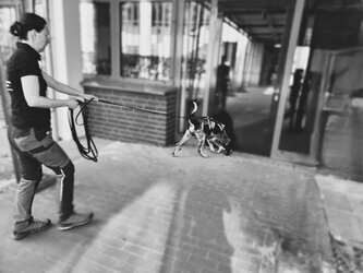 Nachdem wir am Vortag ohne Hunde die Abläufe und Bewegungen besprochen und ausprobiert haben ist es nun an der Zeit das Gelernte, aufgeteilt auf zwei Gruppen, auch mit Hund anzuwenden. Jedes der sieben Team durfte zwei Trails arbeiten. Nach dem ersten Durchgang wurde rekapituliert was schon gut geklappt hat und wo man im zweiten Durchgang noch etwas optimieren möchte.